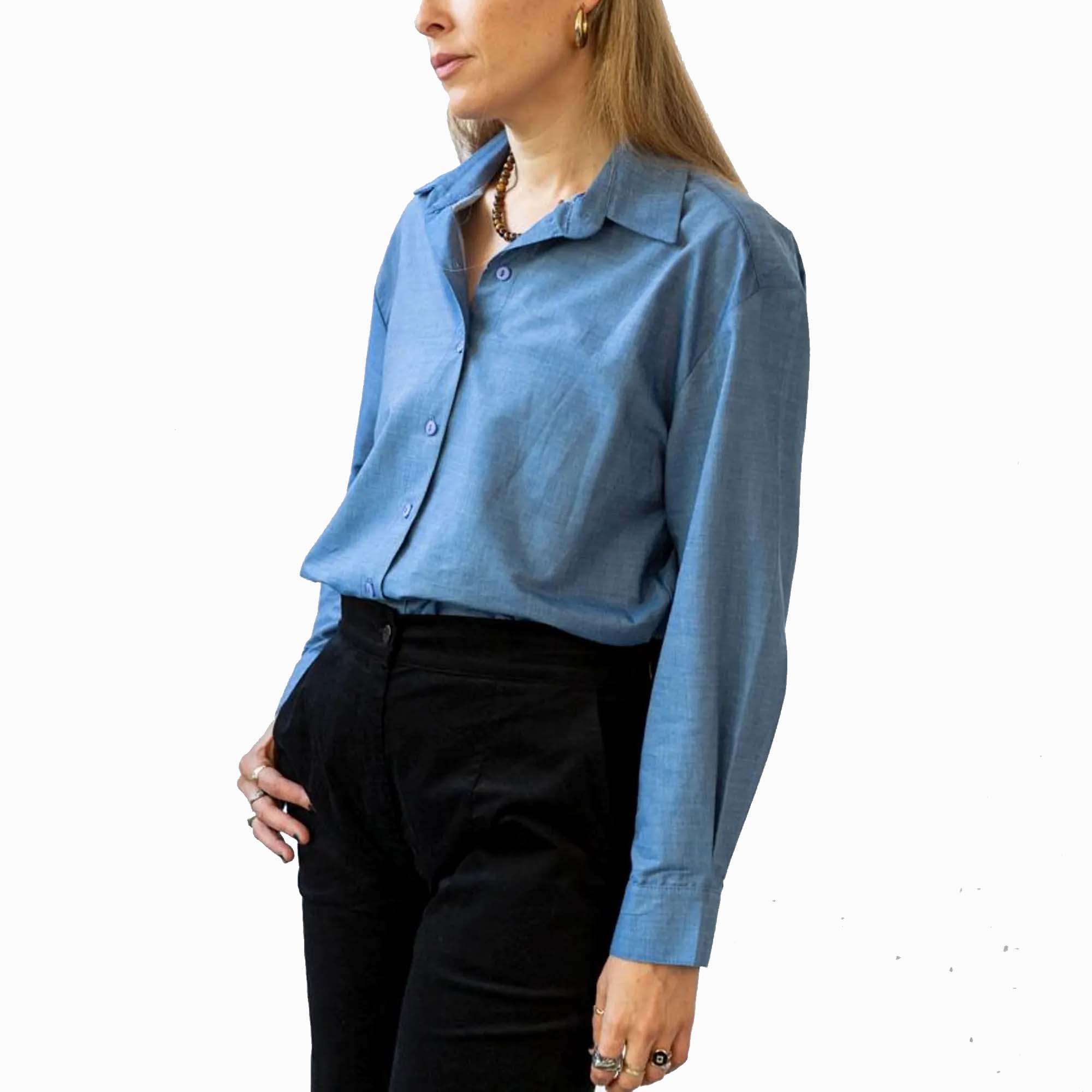 Blue Jean Button Up Shirt – A timeless staple for casual and smart-casual wardrobes. Made from soft yet durable denim, this shirt offers all-day comfort with a structured look. Featuring a classic button-up front, chest pockets, and a relaxed fit, it’s versatile enough to wear on its own or layered over a tee. Perfect for pairing with jeans, chinos, or skirts for a laid-back yet stylish outfit.