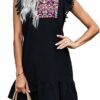 - Floral embroidered shift dress is great to paired with high heels. This beautiful v-neck boho dress, It can be a casual dress, country concert outfits for women, party cocktail dress, wedding guest dress, travel beach vacation outfits, etc
