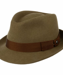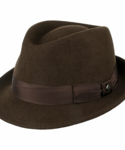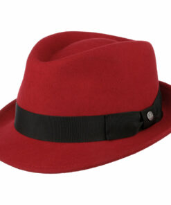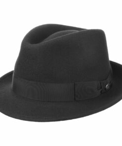 The unmistakable Bogart style lends city strollers and night owls an individual look. The wide grosgrain ribbon and classic circular indent are the distinguishing marks of this handsome hat. Nor are the features of this wool felt hat to be sneezed at: The high-quality Fedora is both crushable and water-resistant and is sure to quickly become a hit model.