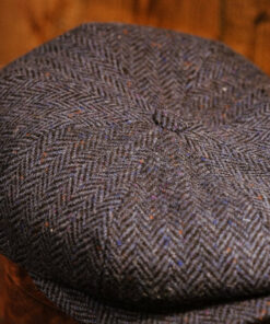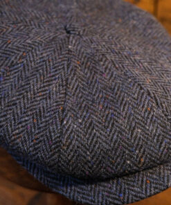 Eight Piece Navy Donegal Tweed Newsboy Cap