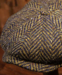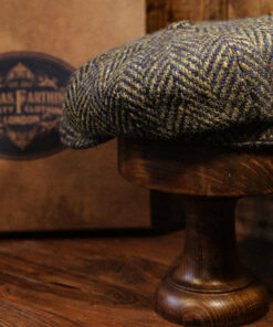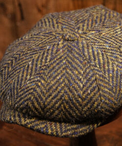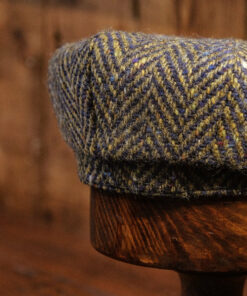Eight Piece Navy & Green Herringbone Wool Newsboy Cap