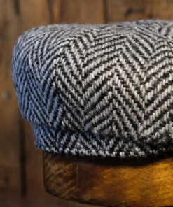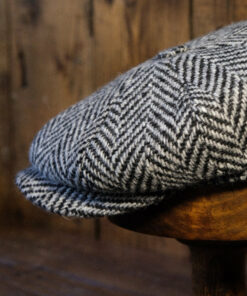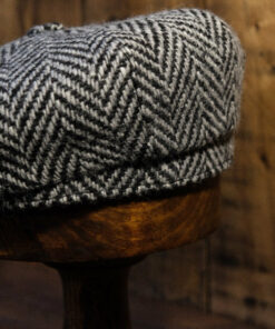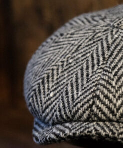 Eight Piece White & Black Herringbone Wool Newsboy Cap