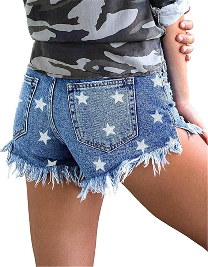- Material: 85%Cotton+10%Polyester+5%Elastane. Made of comfort and stretchy denim fabric. Women’s mid waisted ripped casual denim shorts with pockets.