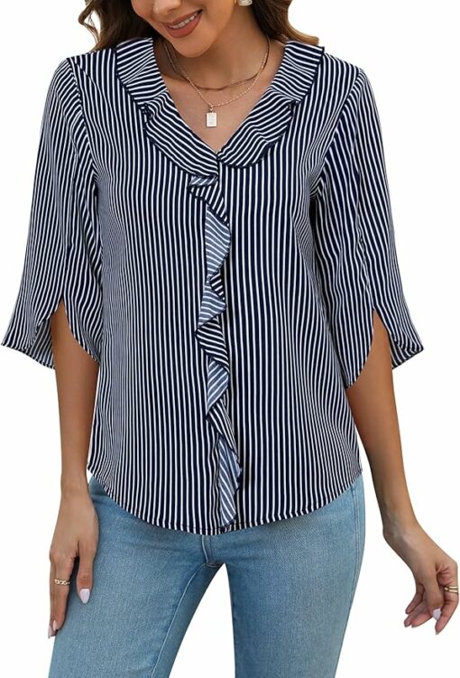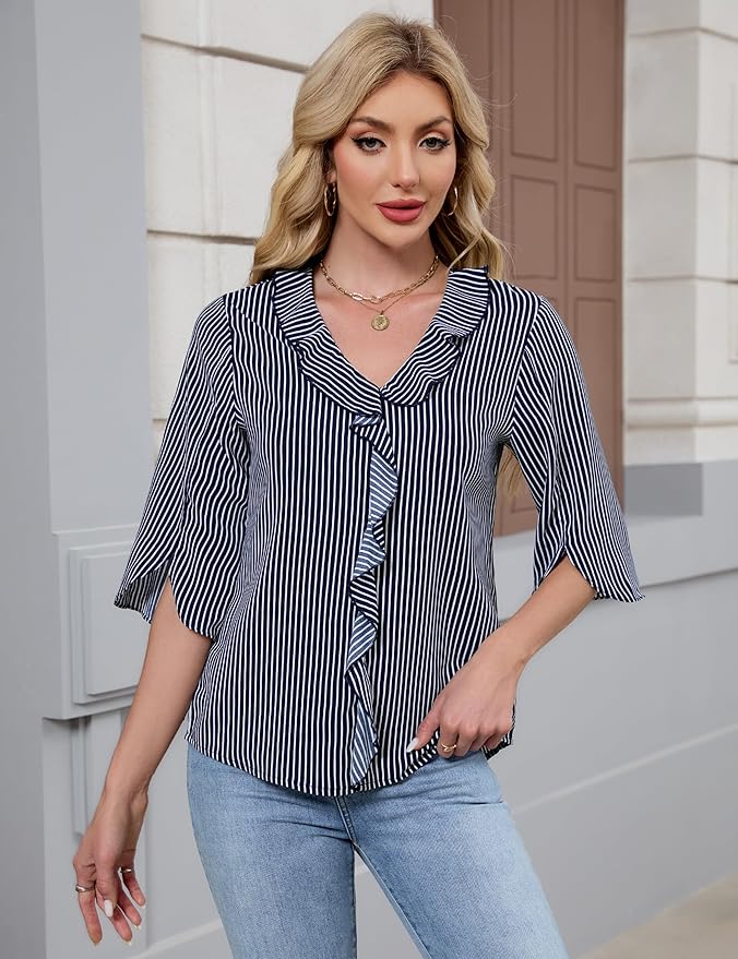- TRENDY TEXTURED – Crafted from soft, lightweight, breathable material, blouses for women dressy casual provide a luxurious feel and exceptional comfort. The subtle crinkle texture adds a unique visual appeal, perfect for various occasions.