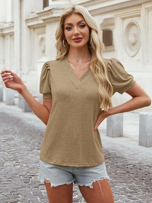 - Material: This blouses for women dressy casual soft v neck shirts is made of 60%polyester, 35% rayon and 5 %spandex, soft, lightweight, breathable, light-stretch, wrinkle-free and skin-friendly.