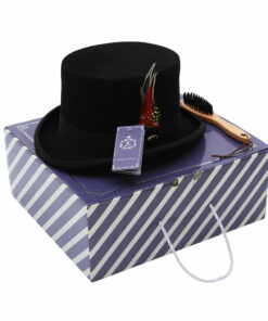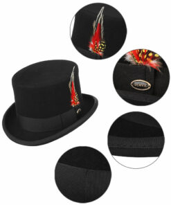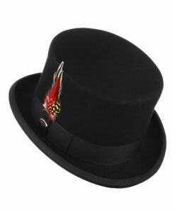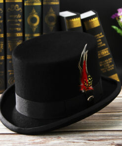 Elevate your ensemble with our exquisite Feather Decorated Black Top Hat. This classic piece features a striking black hue and is adorned with elegant, eye-catching feathers, adding a touch of sophistication and charm. Whether you’re attending a formal event or aiming to make a statement with your everyday look, this top hat is the perfect accessory. The timeless design and meticulous craftsmanship make it a standout choice for any occasion. Embrace tradition with a modern twist and add a dash of elegance to your wardrobe with our Feather Decorated Black Top Hat.