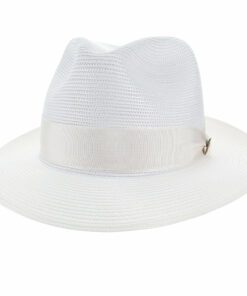 The Rosebud – Dobbs Straw Fedora is lightweight yet extremely durable. Constructed of firm-finish, Florentine Milan Straw, it features a pinch-front crown, cotton interior sweatband and grosgrain hat band.