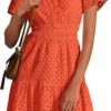 - Made From Premium Cotton, Offering Superior Comfort And Breathability. Unique Hollow Out Lace Material Creates An Elegant And Feminine Look. The Body Part Of This Mini Dress Is Lined To Avoid See-Through