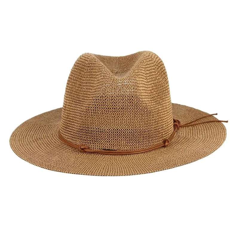 Stay cool and stylish under the sun with this hollow out Panama straw hat. Designed for both men and women, it features a leather ribbon accent and a large brim for sun protection. Whether you’re hitting the beach or enjoying a jazz festival, this versatile hat adds a touch of sophistication to any summer ensemble