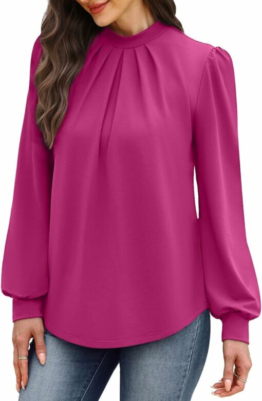 - Material: Crafted from 93% polyester and 7% spandex, this women’s blouse offers a lightweight and breathable feel with just the right amount of stretch. The fabric drapes beautifully without clinging—perfect for staying comfortable and polished from morning meetings to evening plans.