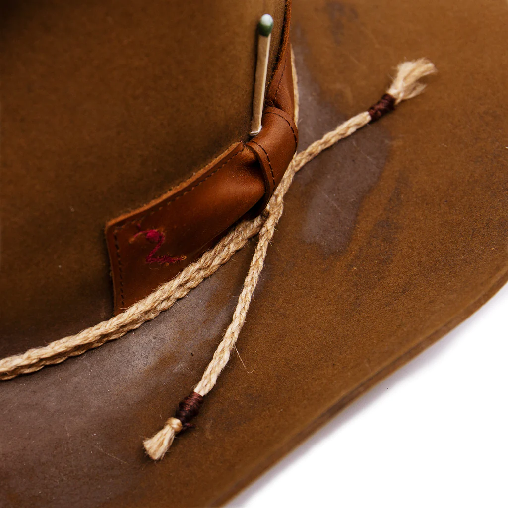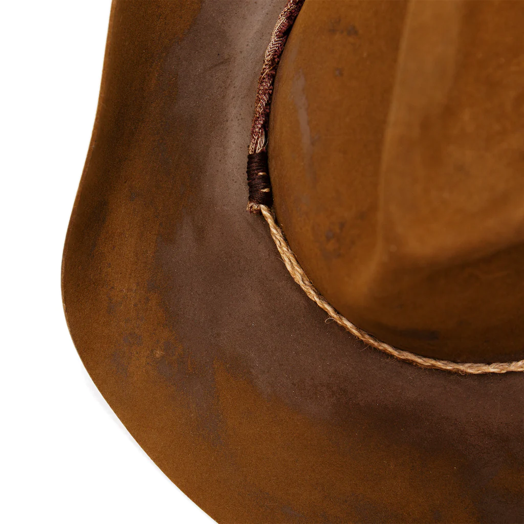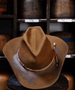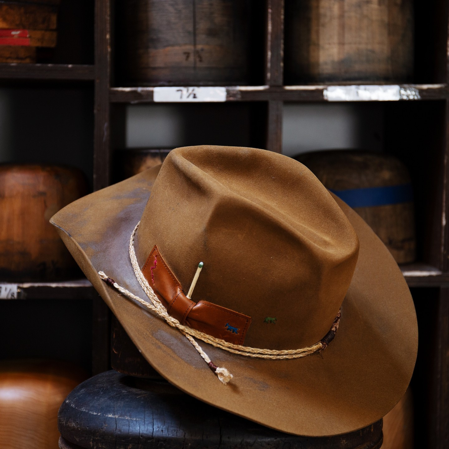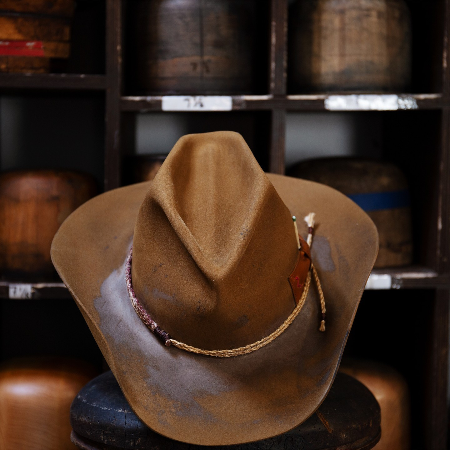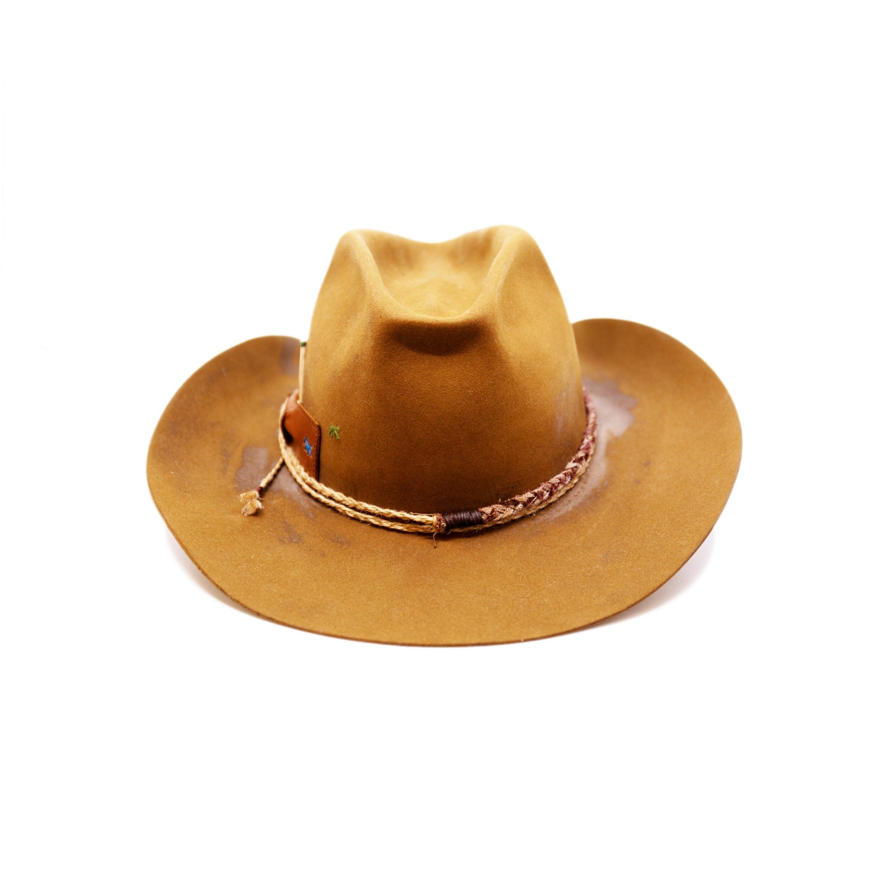 The Rodeo Royalty Morricone Cowboy Hat, a unique piece that embodies the spirit of the West. Each hat is vintage hand-sourced, steamed, and shaped with care, reflecting a creative vision and craftsmanship that is both artistic and heartfelt.