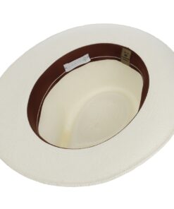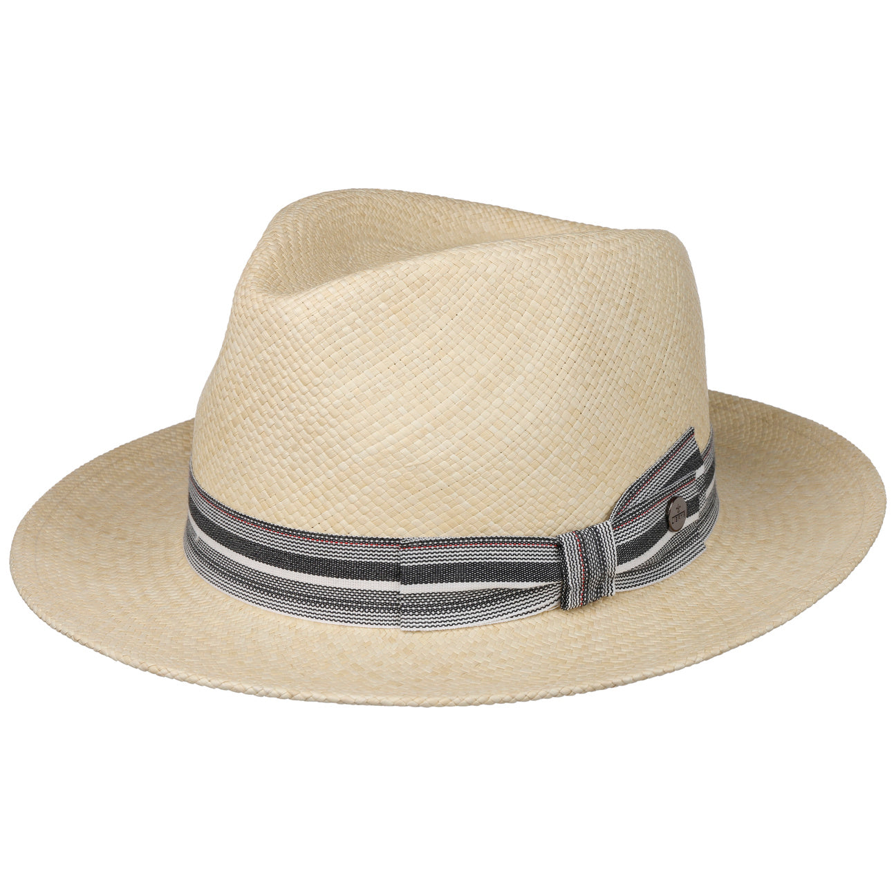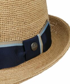 The timeless design of the traveller focuses on the look of the beautiful material from which it is made. The fine weave features a small, delicate zigzag that adorns the head and brim. The natural differences in colour set off the pattern attractively by creating a heathered look. A wonderfully classic summer traveller for sunny days.