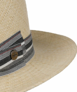 With its trim in tastefully coordinated stripes, this stylish Panama hat is the perfect accessory for hot summer days. 100% Panama straw gives the hat a high quality and elegant character, and makes it airy, lightweight and comfortable to wear. The wide brim provides a pleasant amount of shade at social events in the open air.