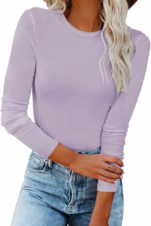 - Sexy Style: This fashion clothing, fitted shirts for women, women’s crop top,t shirts for women, long sleeve top featured with long sleeve, crewneck, super soft and comfortable fabric, slim fit, crop top, solid color. Crew neck t shirts for women, long sleeve cropped shirts for women, tights for women, base layer women cold weather, fall round neck pullover.