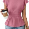 - Soft Material: The dressy casual blouses made of 95% polyester, 5% spandex, easy to care, lightweight, soft and skin-friendly, comfortable and breathable, but a little see-through, especially white and light colours, lightweight and breathable tops keep you cool and comfy on the hot summer,create a flattering and charming look.