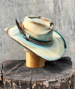 Tempered Teal Vintage Wide-Brimmed Felt Hat