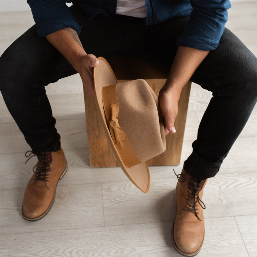 Elevate your style with our exquisite Fedora crafted from luxurious fur felt. Featuring a stylish teardrop crown and accented with a sophisticated grosgrain hatband, this Fedora exudes timeless elegance. Designed for comfort, it boasts a high-quality sweatband and a sleek satin liner for a premium feel.