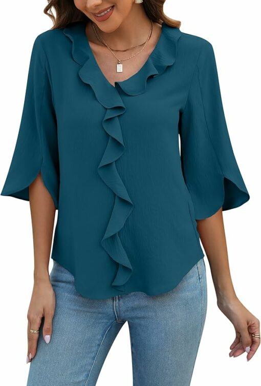 - TRENDY TEXTURED – Crafted from soft, lightweight, breathable material, blouses for women dressy casual provide a luxurious feel and exceptional comfort. The subtle crinkle texture adds a unique visual appeal, perfect for various occasions.