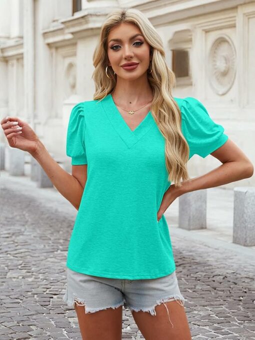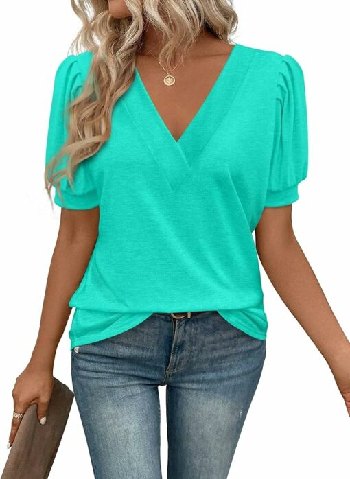- Material: This blouses for women dressy casual soft v neck shirts is made of 60%polyester, 35% rayon and 5 %spandex, soft, lightweight, breathable, light-stretch, wrinkle-free and skin-friendly.