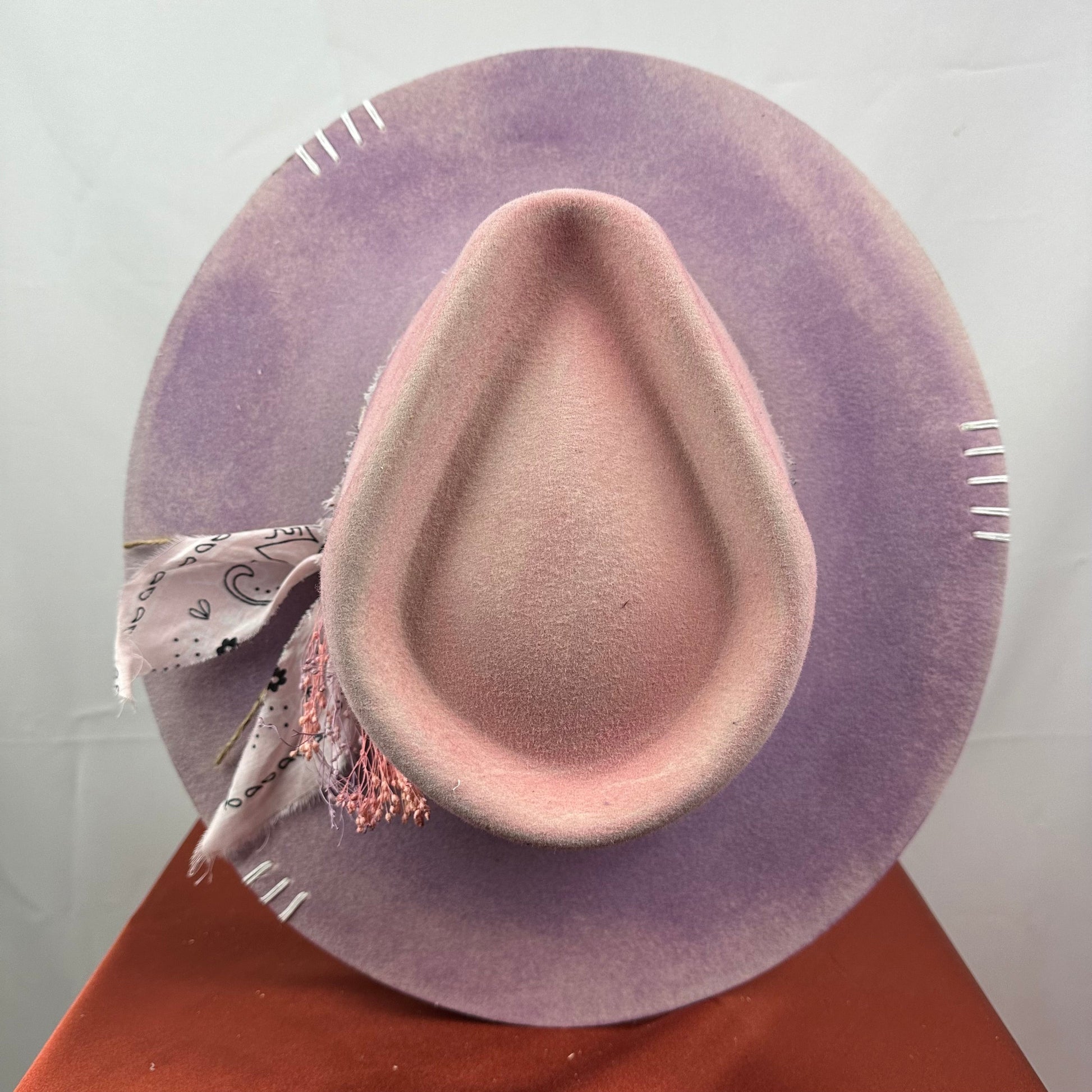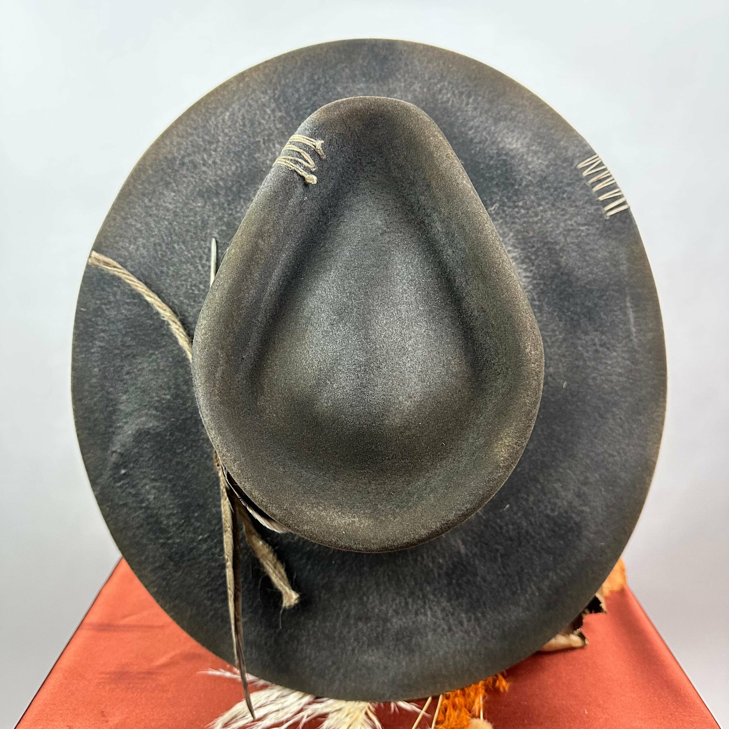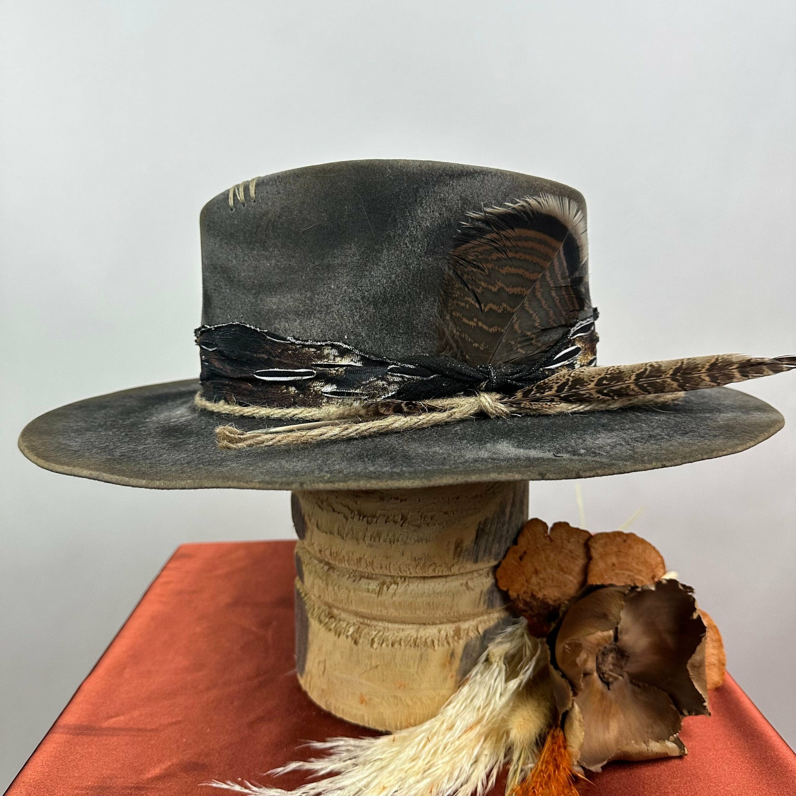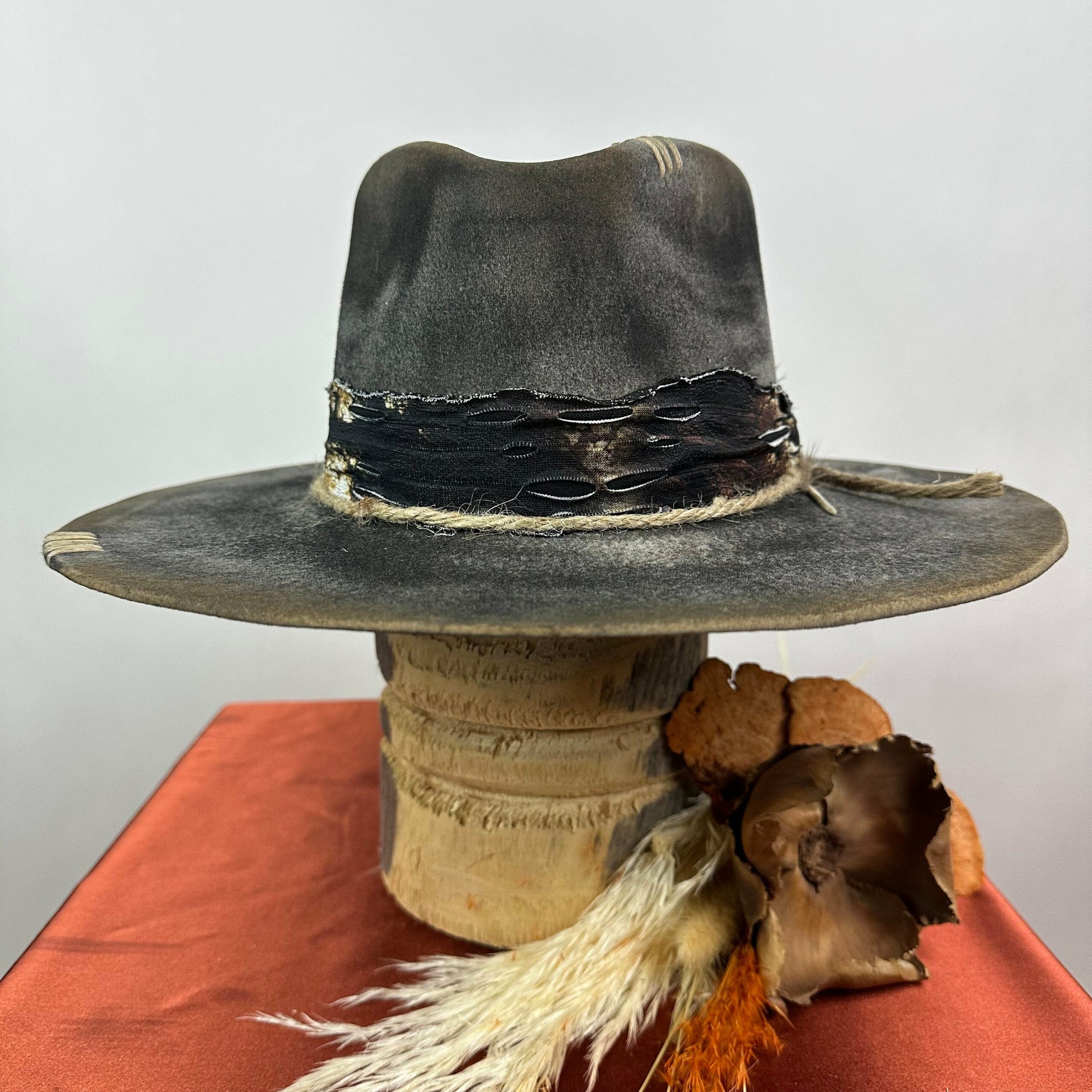 “Vintage Voyage Felt Fedora” is handcrafted, hand-dyed and hand-distressed. That means no two hats have the same color or character, making each hat truly one of a kind. Unique to each hat.