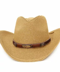 Channel your inner cowgirl or cowboy with this stylish straw sun hat. Designed for both men and women, this hat features alloy feather beads for added flair. Perfect for summer days at the beach or outdoor adventures, this Panama-inspired hat combines Western charm with sun protection for a fashionable and functional accessory