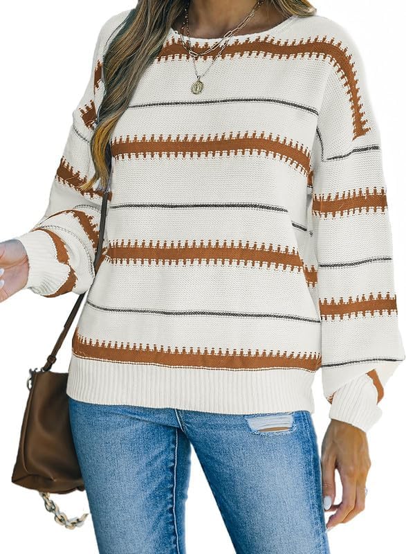 - Soft fabric:Made of soft and skin-friendly knitted material, Striped sweater is very lightweight, soft and breathable,the Casual knit sweater for women to wear in cold morning, spring, fall or winter days.